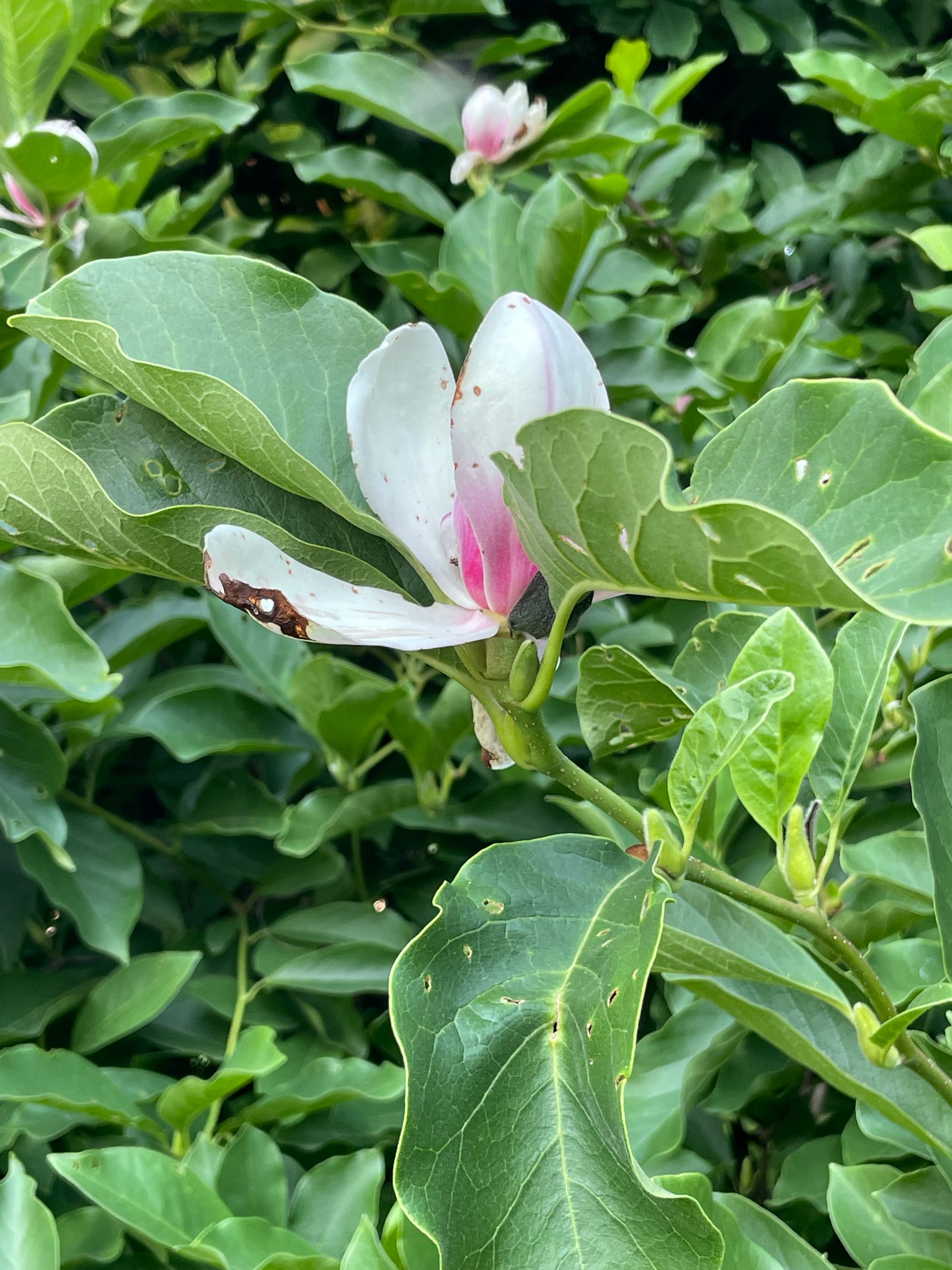 Japanese beetles ruin the magnolias before they have a chance to bloom and pot mark the leaves. Is that how my writing feels? Summer, yet, I'm still distracted by "bugs."